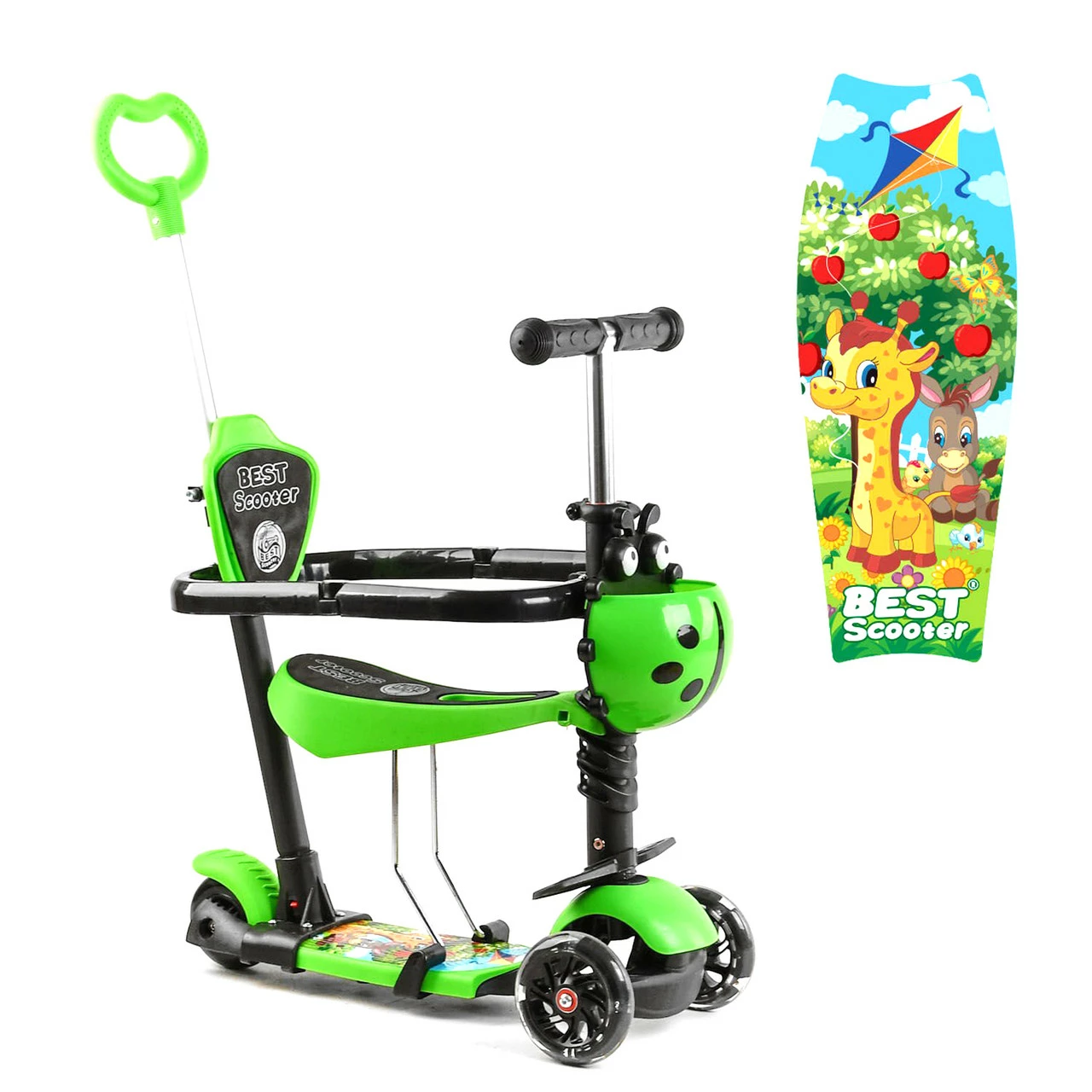 Детский самокат Scooter 5 в 1 предназначен специально для малышей! Благодаря наличию удобного сидения, подножек и ручки родительского контроля, даже самые маленькие детки будут чувствовать себя комфортно во время прогулки. Особенности: