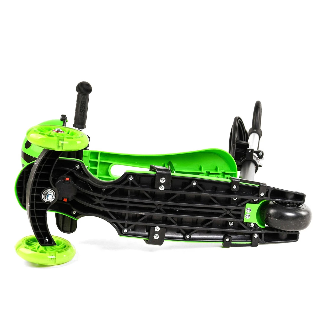 Заднее колесо PVC: диаметр - 9 см, ширина 4 см. Вес самоката 4,2 кг