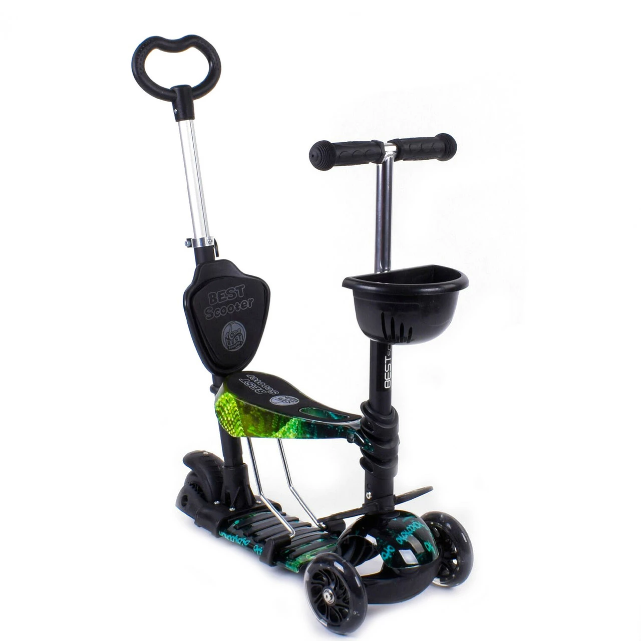 Самокат 5 в 1 Scooter со световым эффектом Черный 6900066328626