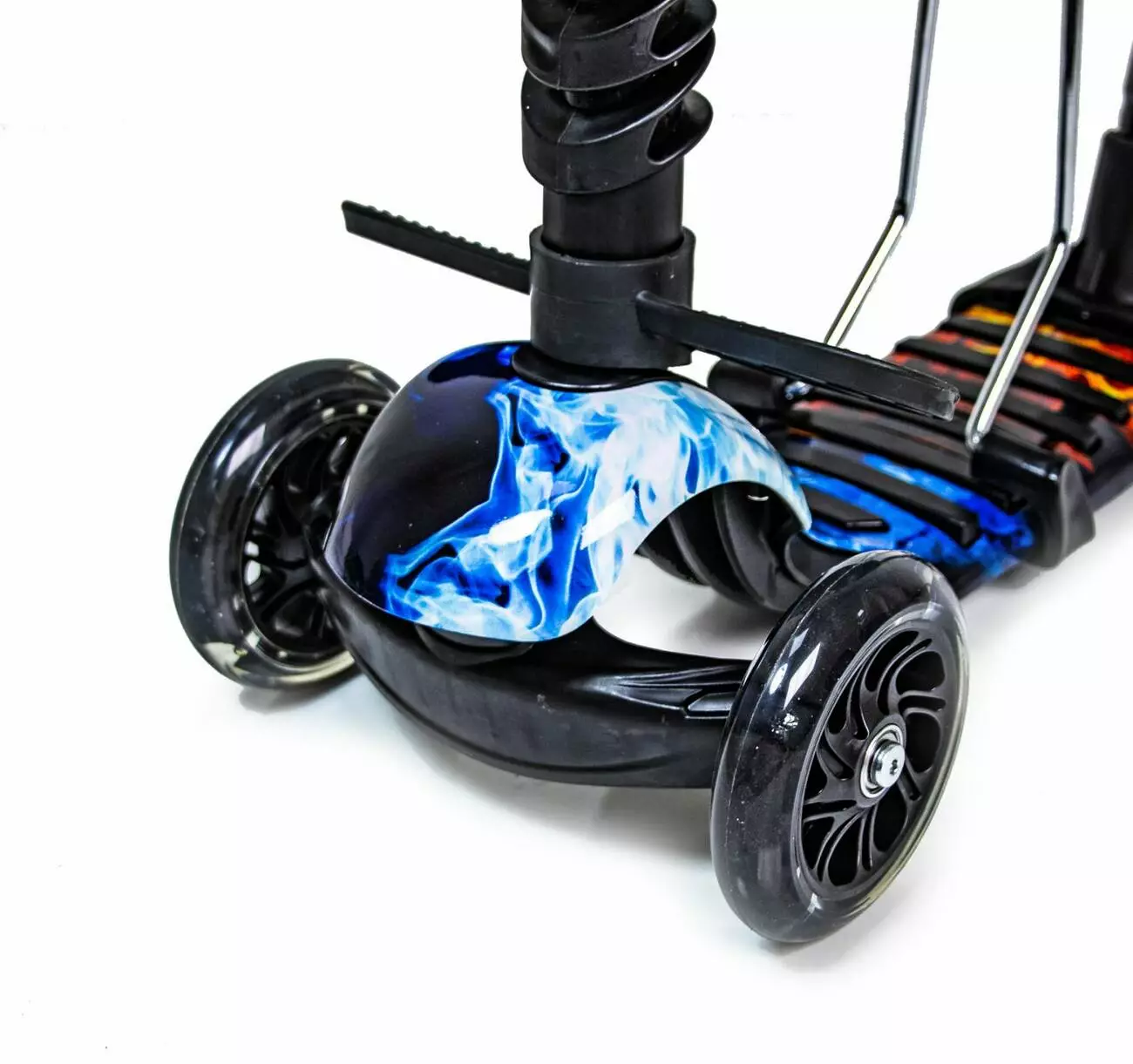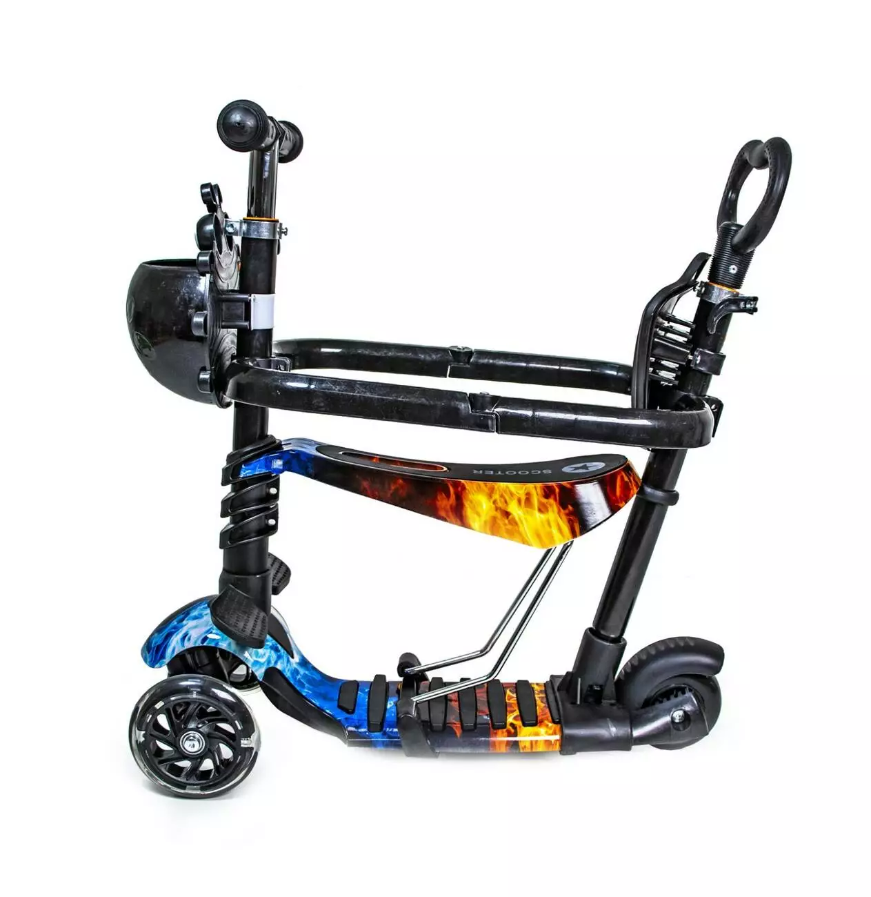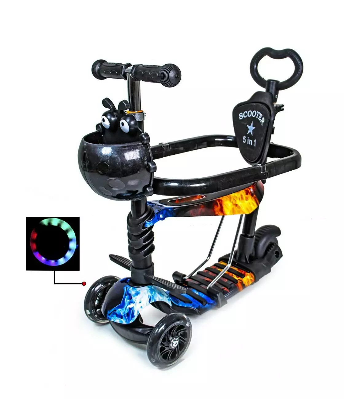 <p>Самокаты с рисунком <strong>Scooter 5in1 </strong>с бортиком в интернет-магазине <strong>Sportdrive.com.ua. </strong></p><br /> <p><strong>Характеристика:</strong></p><br /> <p>-Рама изготовлена из алюминия и пластика.</p><br /> <p>-Алюминиевый регулирующий руль .</p><br /> <p>-Колеса полиуретан, при катании светятся: переднее диаметром 12 см, заднее - 8,5 см, оснащены подшипниками ABEC-7.</p><br /> <p>-Задний тормоз.</p><br /> <p>-Подходит для детей от 2 лет.</p><br /> <p>-Наибольшая нагрузка - 50 кг.</p><br /> <p>-Продается в упаковке.</p><br />