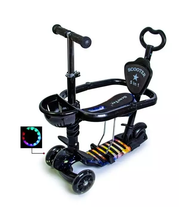 <p>Самокаты с рисунком <strong>Scooter 5in1 </strong>с бортиком в интернет-магазине <strong>Sportdrive.com.ua. </strong></p><br /> <p><strong>Характеристика:</strong></p><br /> <p>-Рама изготовлена из алюминия и пластика.</p><br /> <p>-Алюминиевый регулирующий руль .</p><br /> <p>-Колеса полиуретан, при катании светятся: переднее диаметром 12 см, заднее - 8,5 см, оснащены подшипниками ABEC-7.</p><br /> <p>-Задний тормоз.</p><br /> <p>-Подходит для детей от 2 лет.</p><br /> <p>-Наибольшая нагрузка - 50 кг.</p><br /> <p>-Продается в упаковке.</p><br />
