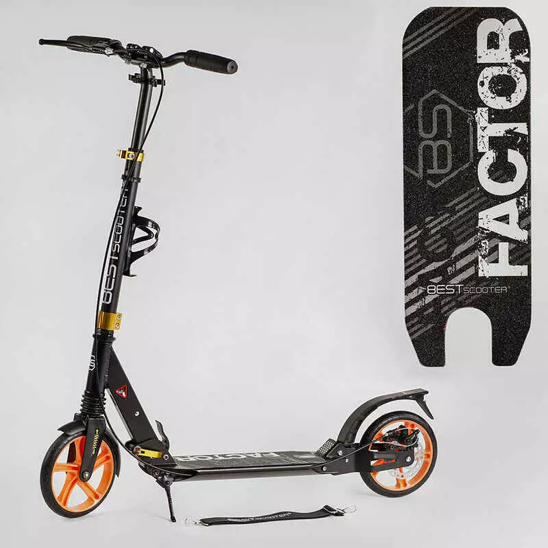 Самокат алюмінієвий Best Scooter BS-98033 (4) ""Factor"", ручне дискове гальмо, діаметр PU коліс - 200мм, 2 амортизатори, підсклянник, в коробці