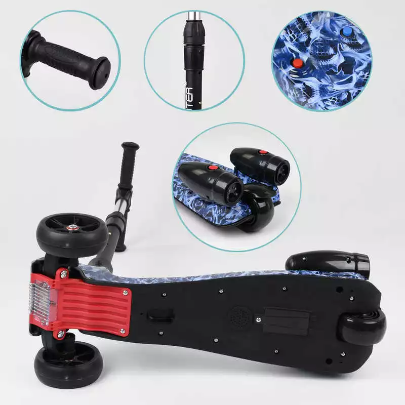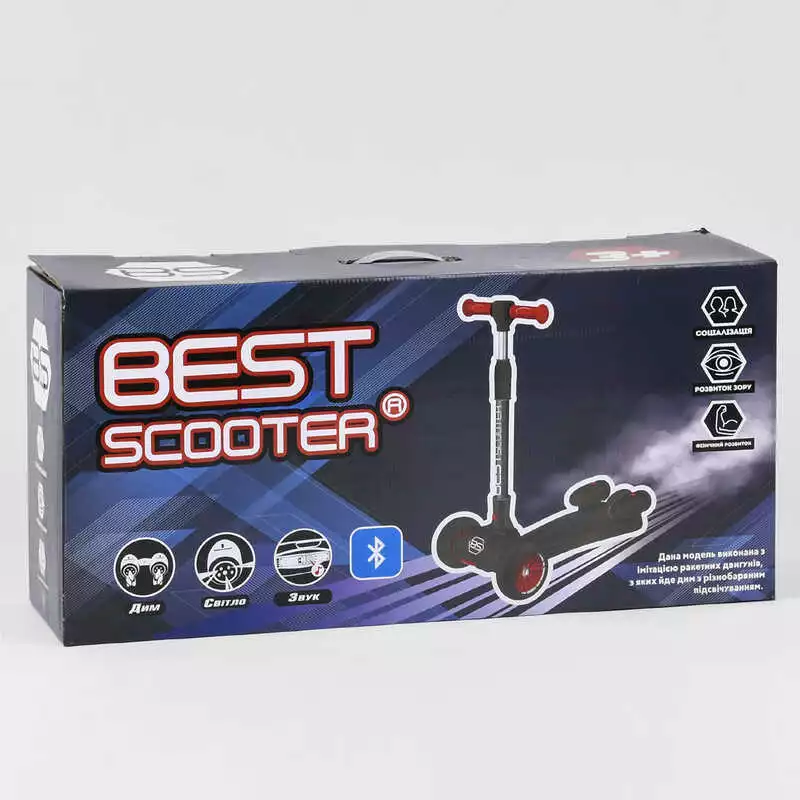 Самокат "Best Scooter" MAXI" 46189 с парогенератором (4) МУЗЫКА, ДЫМ, ТУРБИНЫ, пластмассовый, колеса PU 120х40мм, складной алюминиевый руль, в коробке