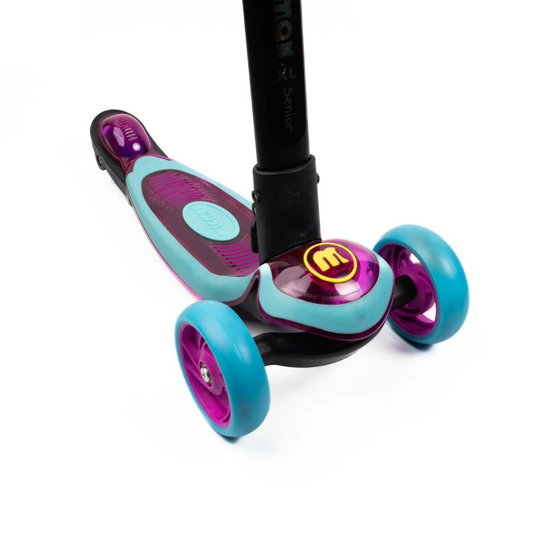 Самокат оснащен 3-мя колесами, которые обеспечивают устойчивость и