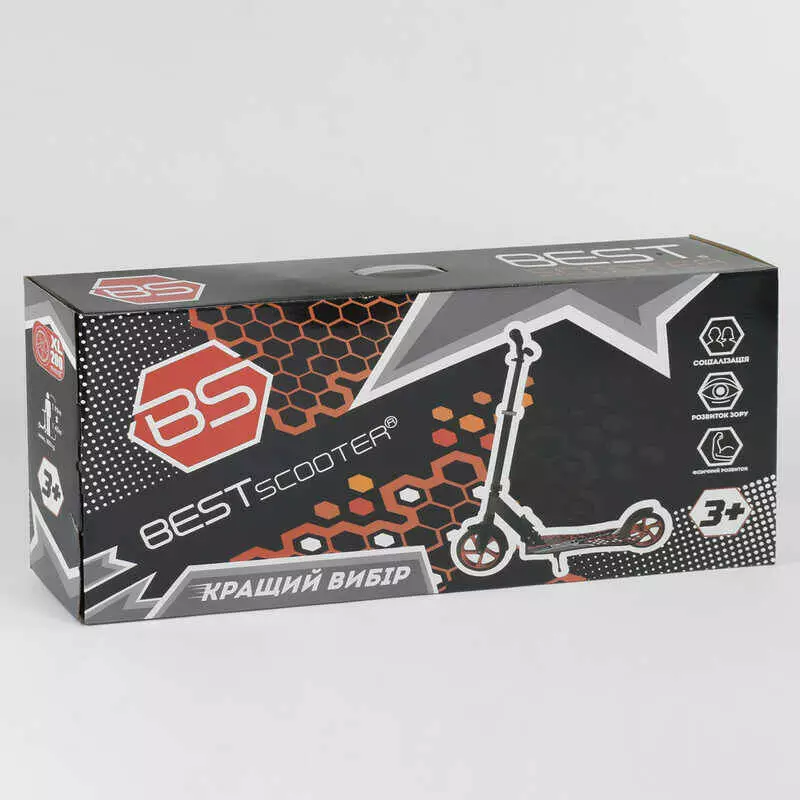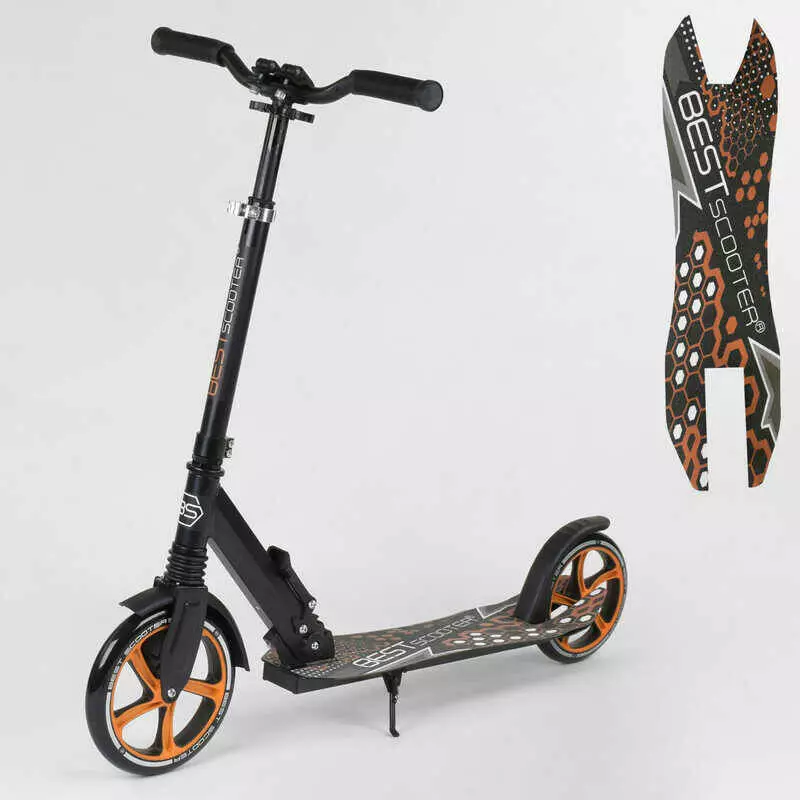 Самокат двухколесный 34750 (2) Best Scooter, ЧЕРНЫЙ, зажим руля, переднее колесо PU - 230мм, заднее колесо PU - 200мм, 1 амортизатор, в коробке