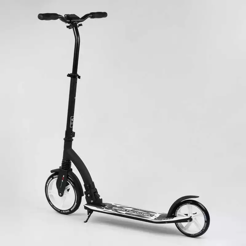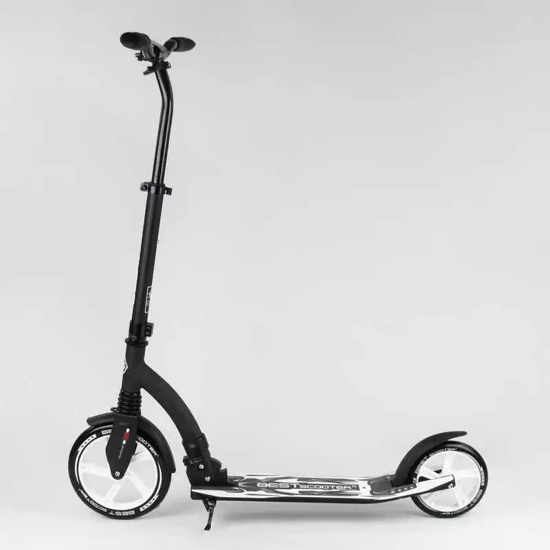 Самокат двухколесный Best Scooter 75343 (4) колеса PU - переднее 23 см, заднее - 20 см, 1 амортизатор, широкий руль, зажим руля, в коробке