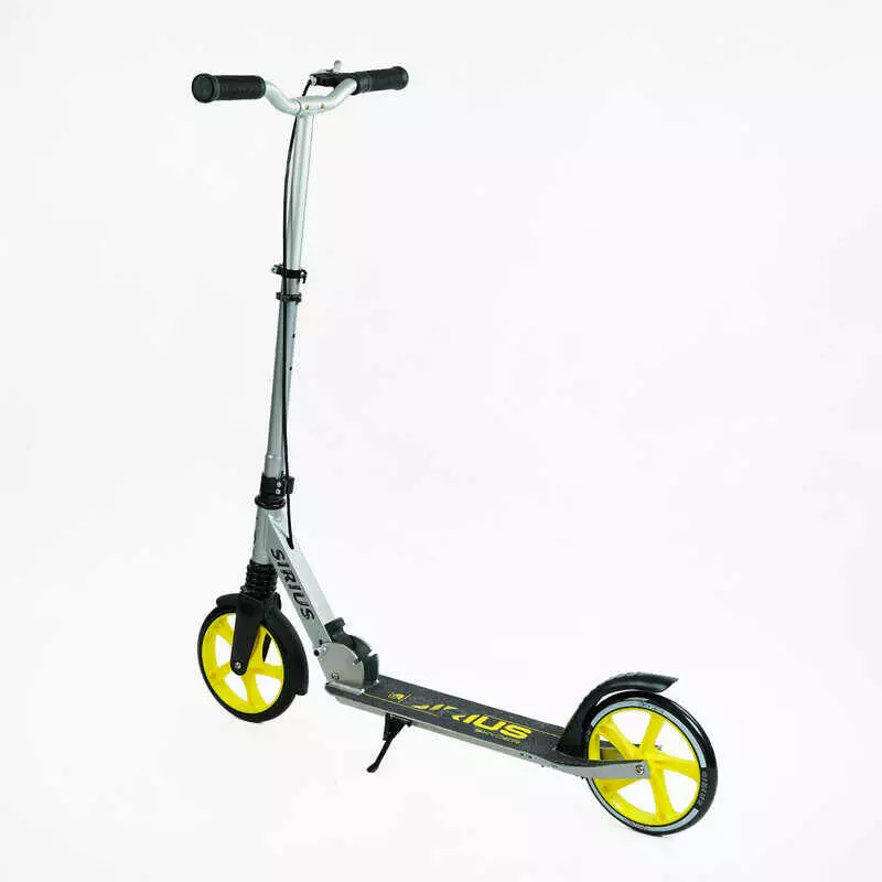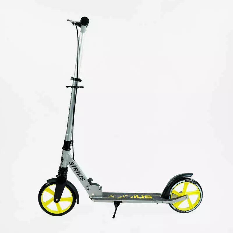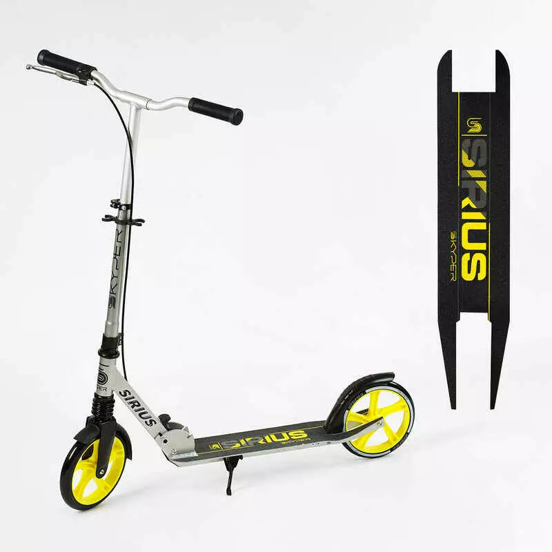 Самокат двухколесный "Skyper" S - 25817 (4) "Sirius", серо-желтый, колеса PU 200 мм, 1 аммортизатор, ручной тормоз, в коробке