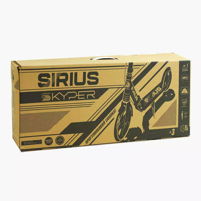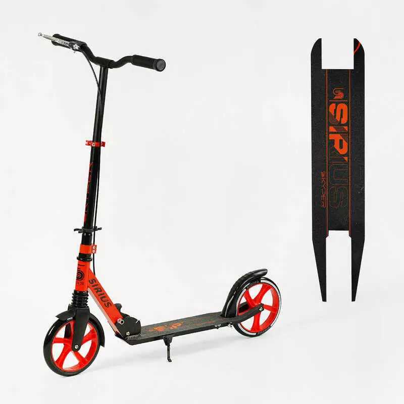 Самокат двухколесный "Skyper" S - 86735 (4) "Sirius", черно-красный, колеса PU 200 мм, 1 аммортизатор, ручной тормоз, в коробке