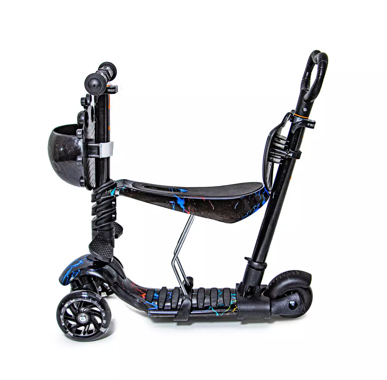 <p>Самокаты Scooter <strong>"Черная Молния"</strong> <strong>5in1</strong> в интернет-магазине Sportdrive.com.ua.</p><br /> <p><strong>Характеристика:</strong></p><br /> <ol><br /> <li>-Рама изготовлена из алюминия.</li><br /> <li>-Алюминиевый регулирующий руль .</li><br /> <li>-Колеса полиуретановые литые, при катании светятся: переднее диаметром 12 см, заднее</li><br /> <li>- 8,5 см, оснащены подшипниками ABEC-7.</li><br /> <li>-Задний тормоз.</li><br /> <li>-Подходит для детей старше 2 лет.</li><br /> <li>-Наибольшая нагрузка - 60 кг.</li><br /> <li>-Продается в индивидуальной упаковке.</li><br /> <li>-Расцветка: разноцветный.</li><br /> </ol><br />