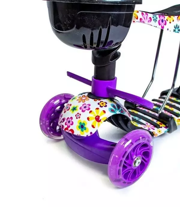 Самокат Scooter 5в1 с рисунком Фиолетовый Цветочек
