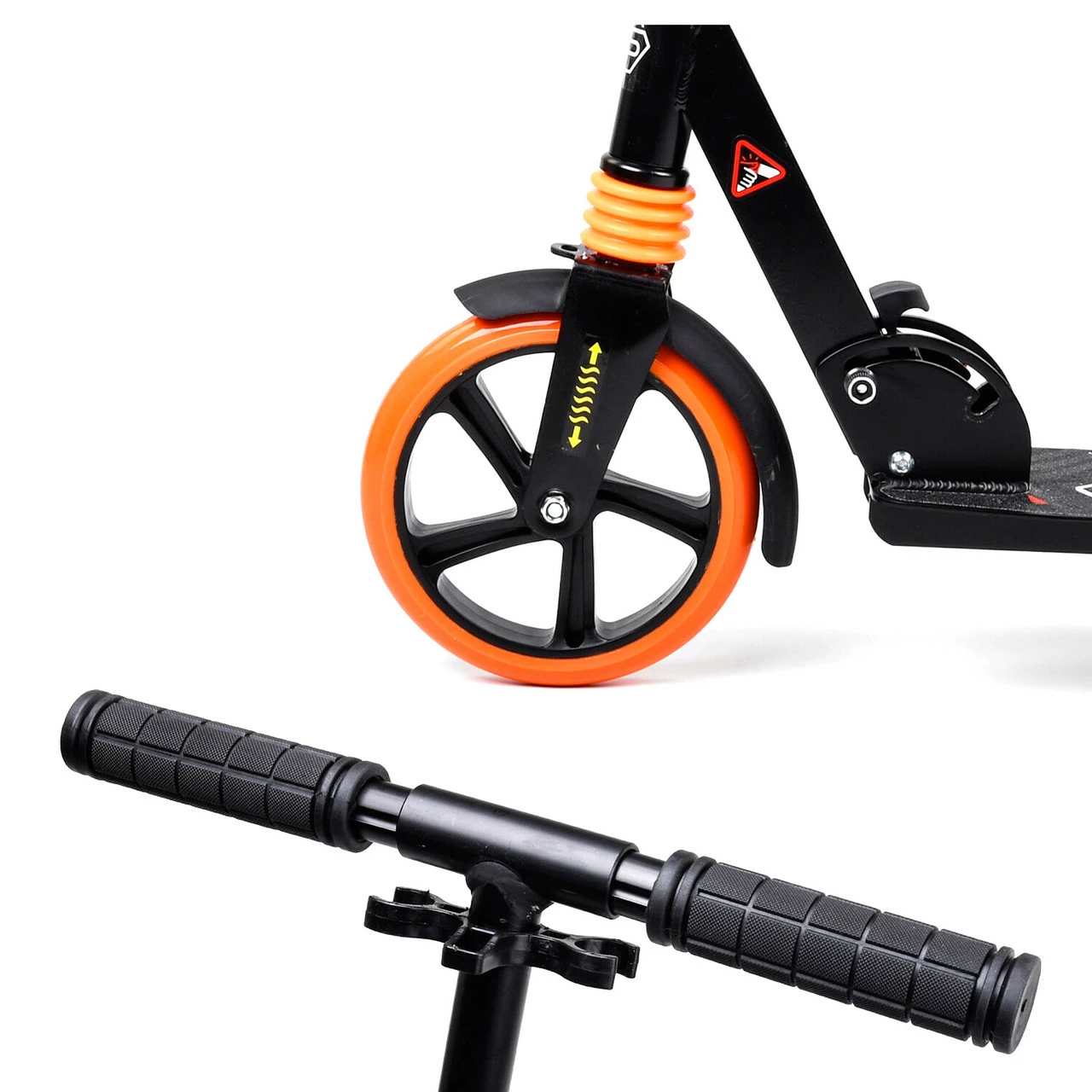 воздухе. Рама самоката изготовлена из прочного металла устойчивого