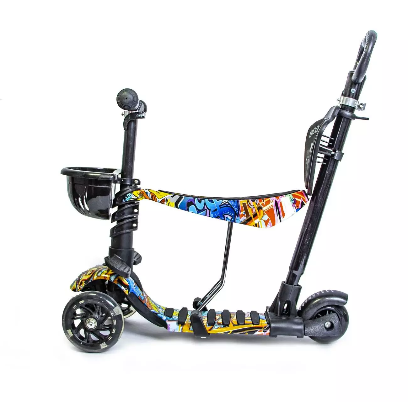 <p>Самокаты Scooter "Graffiti" 5in1 в интернет-магазине Sportdrive.com.ua. Характеристика: -Рама изготовлена из алюминия. -Алюминиевый регулирующий руль . -Колеса полиуретановые литые, при катании светятся: переднее диаметром 12 см, заднее - 8,5 см, оснащены подшипниками ABEC-7. -Задний тормоз. -Подходит для детей старше 2 лет. -Наибольшая нагрузка - 60 кг. -Продается в индивидуальной упаковке. -Расцветка: разноцветный.</p><br />