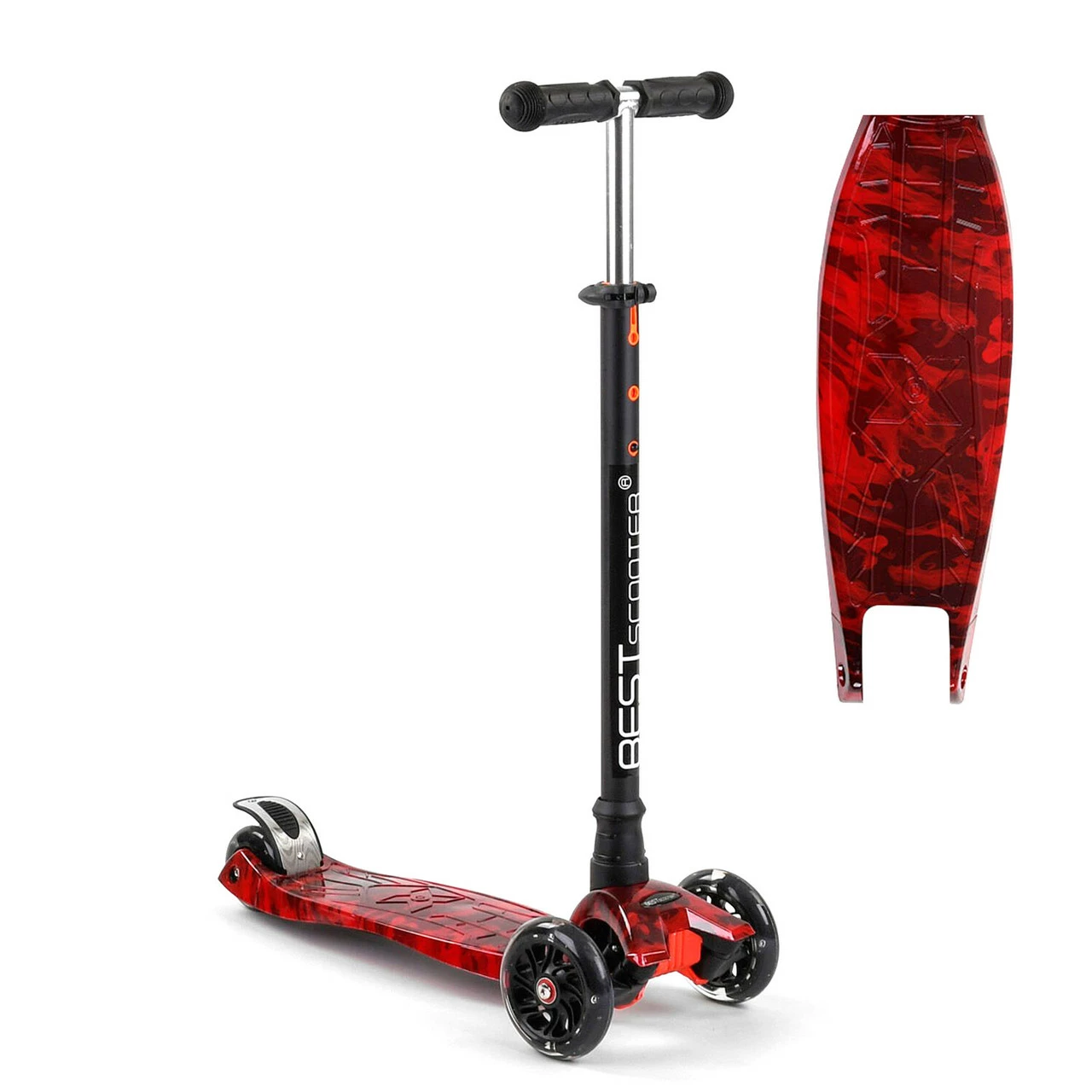 катания. Пластмассовая дека самоката выполнена из прочного