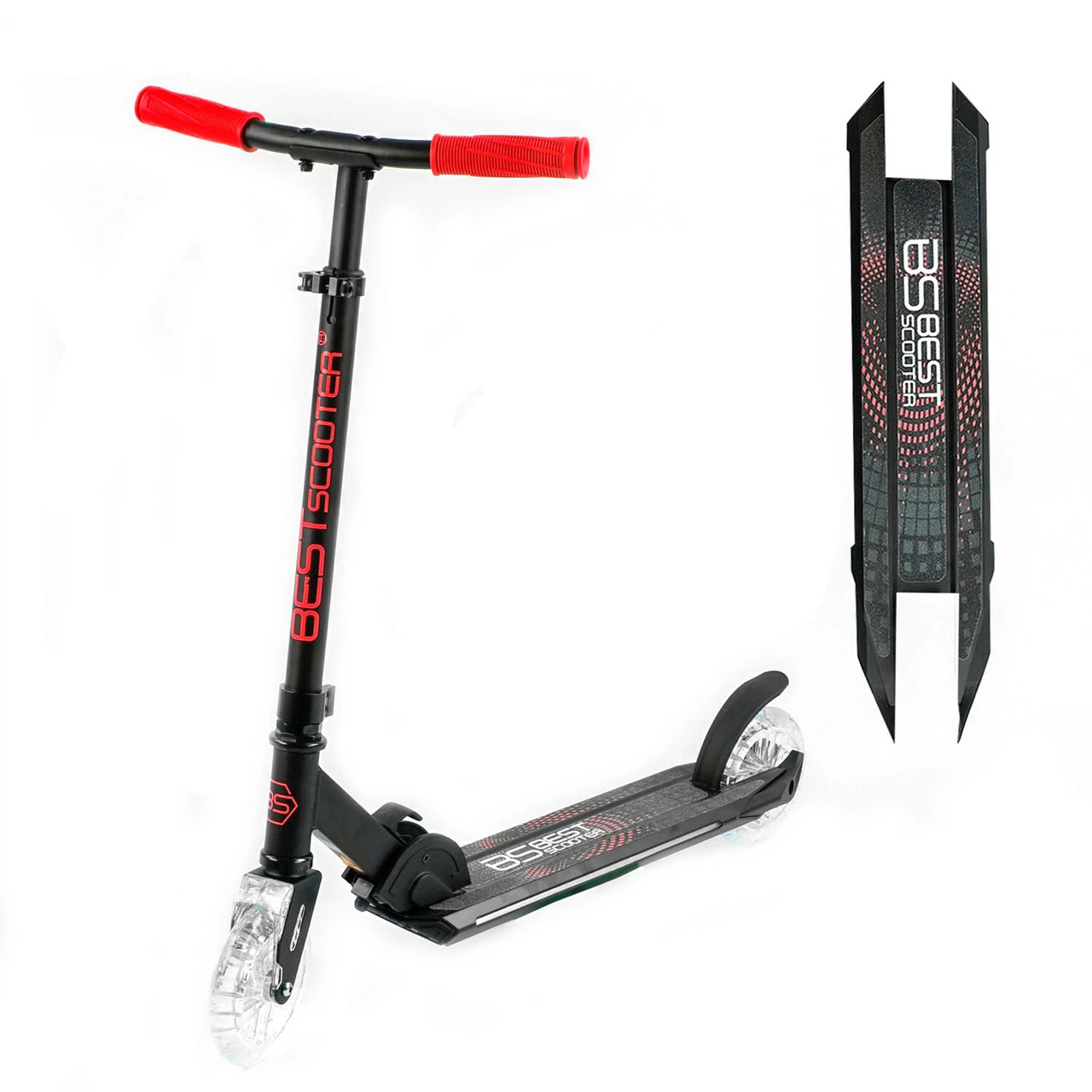 со светом! Торможение самоката производится ножным тормозом при