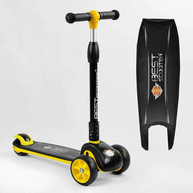 Самокат триколісний 84377 Best Scooter (6) ЖОВТИЙ, складане алюмінієве кермо, 3 колеса PU зі світлом, d переднього 120х40мм, d заднього 80х24мм