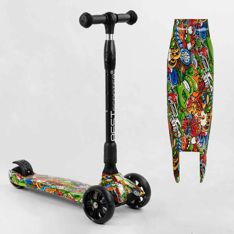 Самокат триколісний Best Scooter 46-009 MAXI (6) складне алюмінієве кермо, 3 колеса PU зі світлом, переднє 130х35 мм, заднє 80х45 мм, в коробці