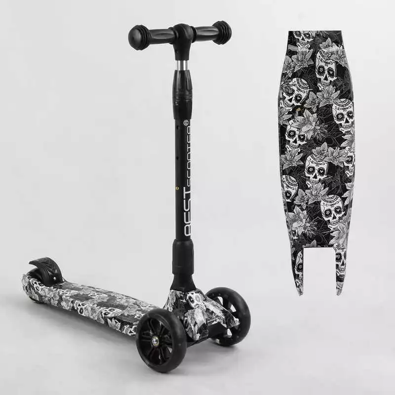 Самокат трехколесный Best Scooter 65-878 MAXI (6) складной алюминиевый руль, 3 колеса PU со светом, переднее 130х35 мм, заднее 80х45 мм, в коробке