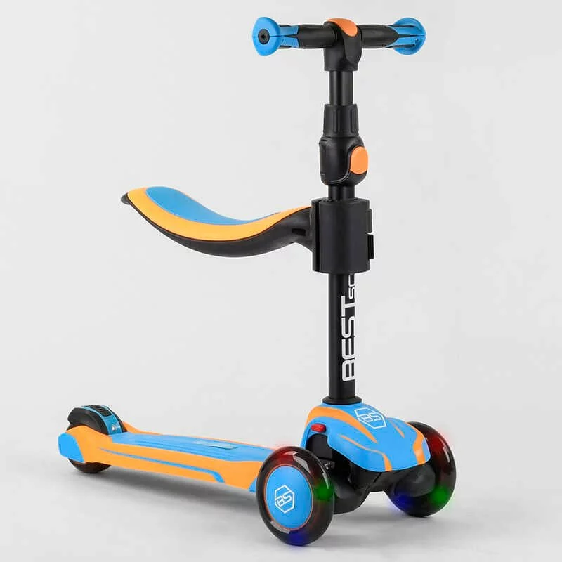 Самокат триколісний Best Scooter JS-30918 (4) з сидінням, алюмінієве кермо, 3 колеса PU зі світлом, d = 12 см