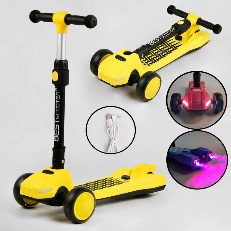 Самокат триколісний LT-13968 Best Scooter з парогенератором (6) складне кермо, ЗВУК МАШИНИ, ДИМ, СВІТЛО, пластмасовий, колеса PU 120х35мм, в коробці