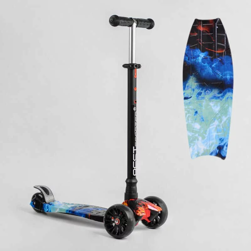 Самокат триколісний MAXI S - 10808 (1) “Best Scooter”, кермо з'ємне, колеса PU зі світлом, переднє 130х25 мм, задні здвоєні 80х45 мм, в коробці