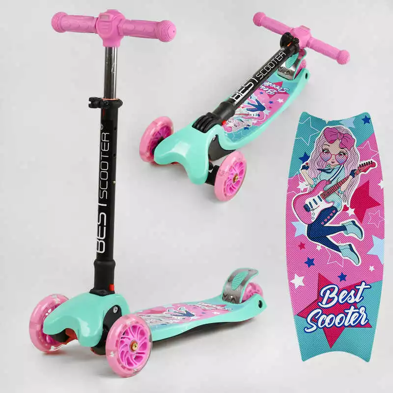Самокат триколісний L-8711 Best Scooter (1) MAXI, складне кермо З ФАРОЙ, 4 колеса PU зі світлом, d=12 см, в коробці