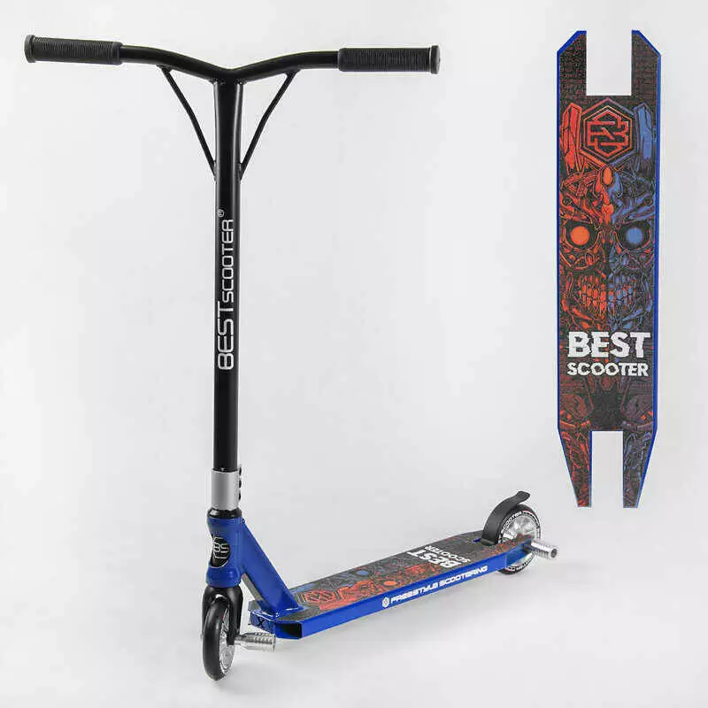 Самокат трюковый Best Scooter 50352 (1) HIC-система, ПЕГИ, алюминиевый диск и дека, колёса PU d-110мм, ширина руля-52см, высота - 83см, в коробке