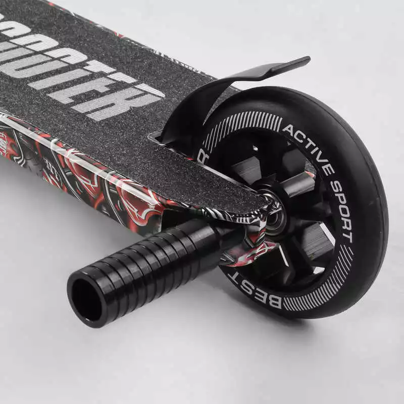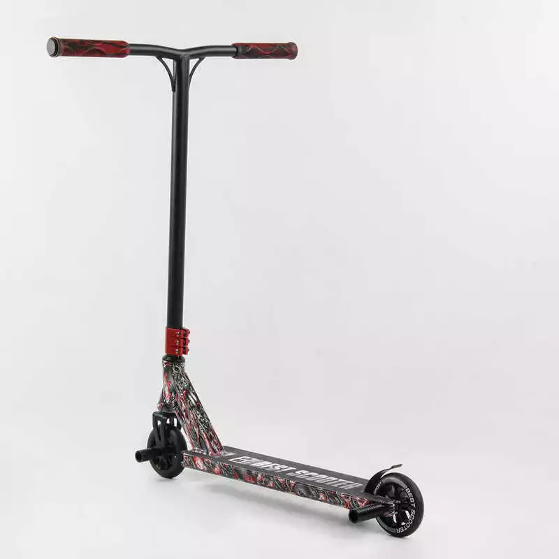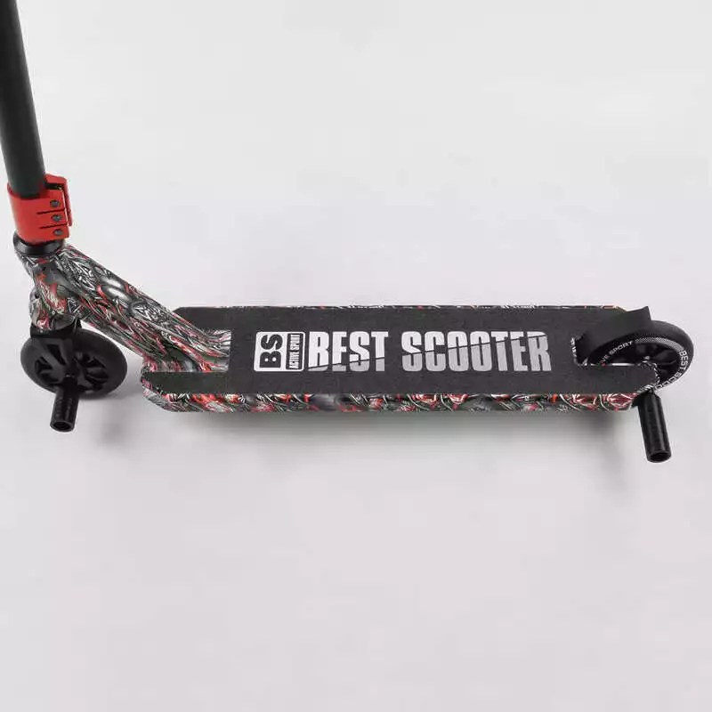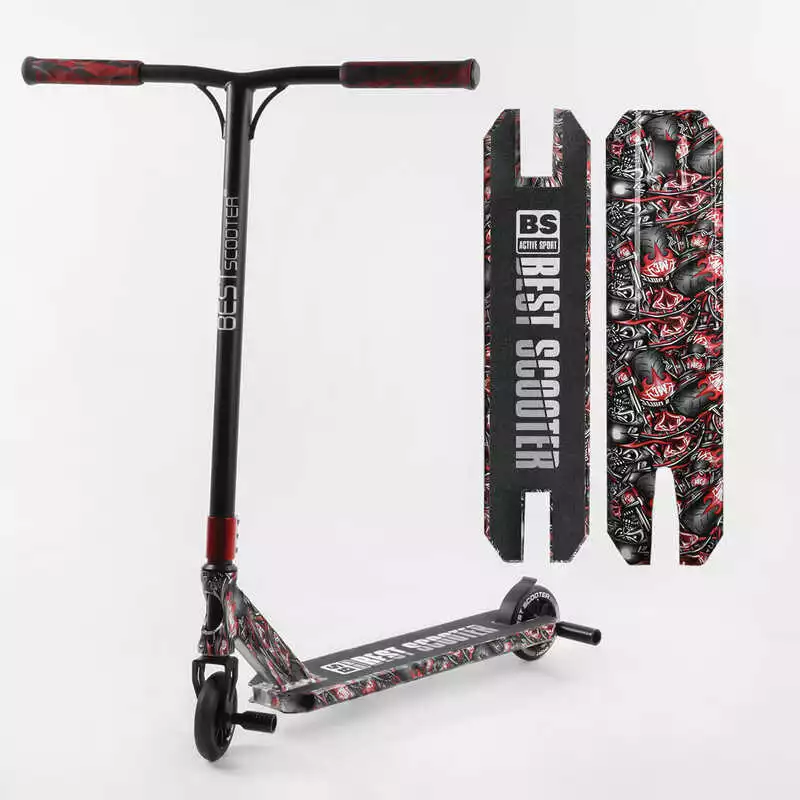 Самокат трюковый Best Scooter BS-77488 (4) HIC-система, ПЕГИ, алюминиевый диск и дека с ПРИНТОМ, колёса PU, d=110мм, ширина руля - 60 см, в коробке