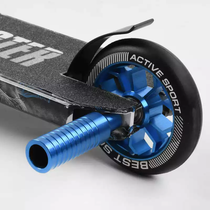 Home > Catalog > Childen's goods > Scooter > Самокат трюковый Best Scooter BS-77566 (4) HIC-система, ПЕГИ, алюминиевый диск и дека с ПРИНТОМ, колёса PU, d=110мм, ширина руля - 60 см, в коробке wholesale