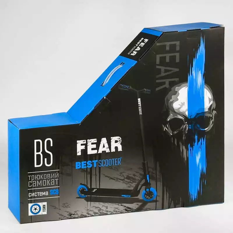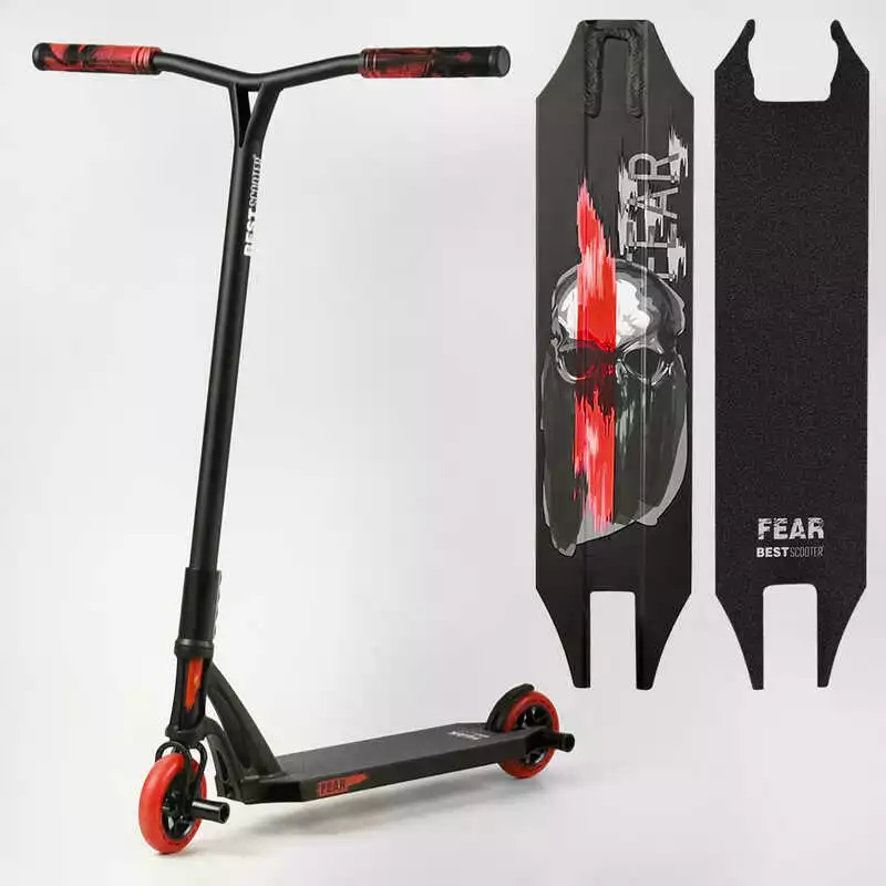 Самокат трюковый МТ-50599 Best Scooter (4) "FEAR" SCS-система, ПЕГИ, алюминиевый диск и дека, колёса PU, d=115мм, ширина руля 58 см