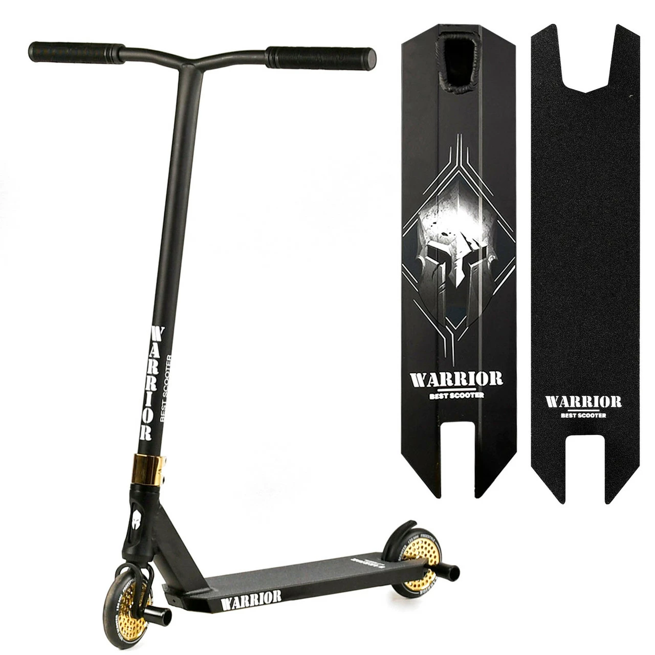 Характеристики. Руль: Материал хром-молибден (CrMo 4130). Хромомолибденовый сплав стали популярный материал для изготовления рулей. Сочетает в себе высокую жесткость и прочность. Высота от пола 85 см. Ширина руля 58 см. Материал грипс резина (двухцветные), TPE rubber Grips (double colour) 170L. Система компрессии НІС (Standard Compression System). Фиксирует компрессию 2-болтовый зажим. Дека: Материал алюминий AL7003-T6. Длина 52 см. Ширина 12 см. Тормоза гибкий ножной (Nylon+Mn steel). Колеса: Диаметр 120 мм. Ширина 24 мм. Материал - высококачественный SHR-полиуретан ("Super High Rebound" сверх высокий отскок). Подшипники ABEC-9 Chrome. Это подшипники высокой точности сборки, обладают хорошим накатом и надежностью. Пеги: Материал алюминий CNC AL6061-T6. Длина 5 см. Диаметр 2.8 см. Сверхпрочная ось твердость класса 11.9 (Grade hardness 11.9).