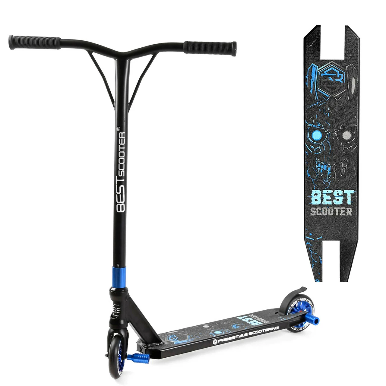 модель трюкового самоката с усиленной рамой и стильным фирменным