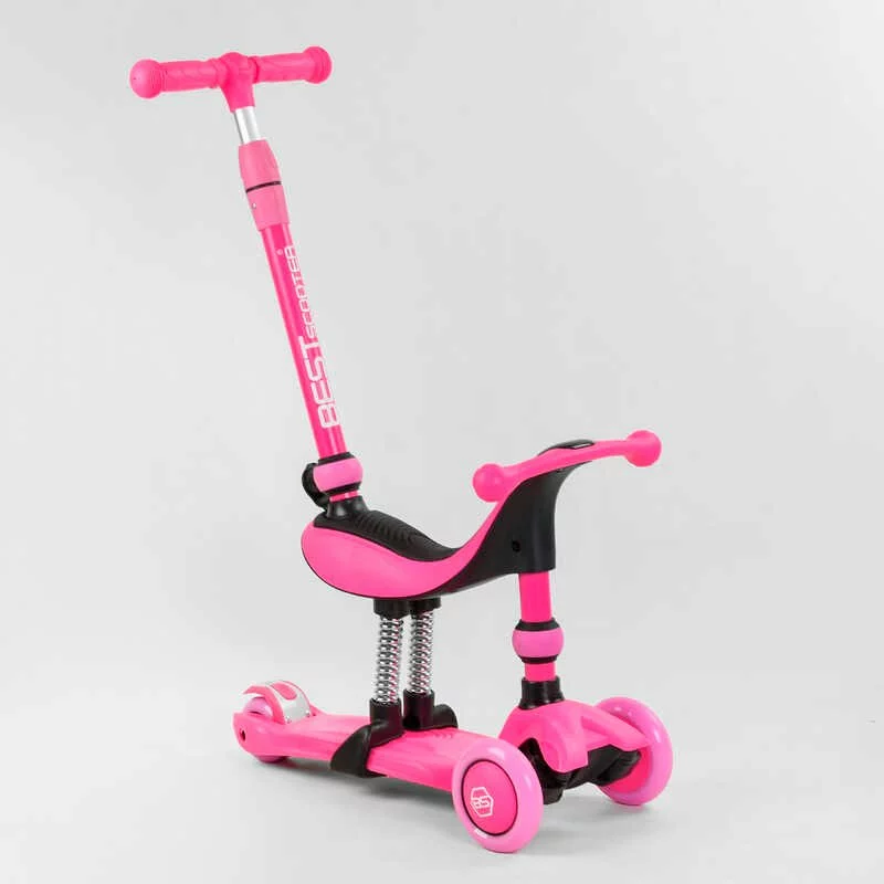 Самокат-велобіг 3в1 триколісний BS-23180 (4) Best Scooter, 3 колеса PU зі світлом, сидіння, амортизатори, батьківська ручка
