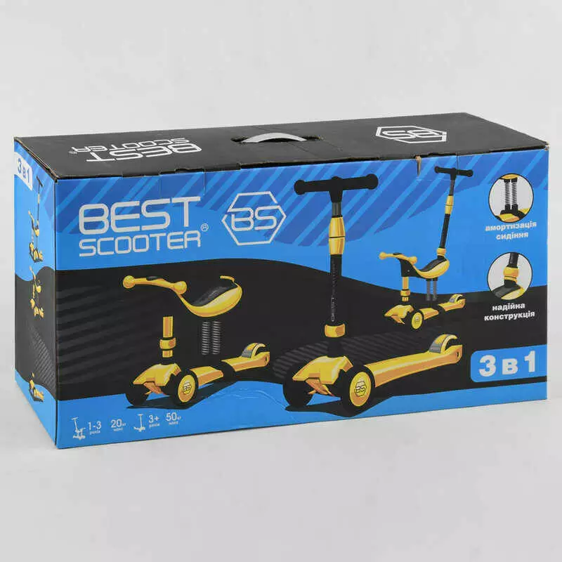 Самокат-велобег 3в1 трехколесный BS-27018 (4) Best Scooter, 3 колеса PU со светом, сидение, амортизаторы, родительская ручка