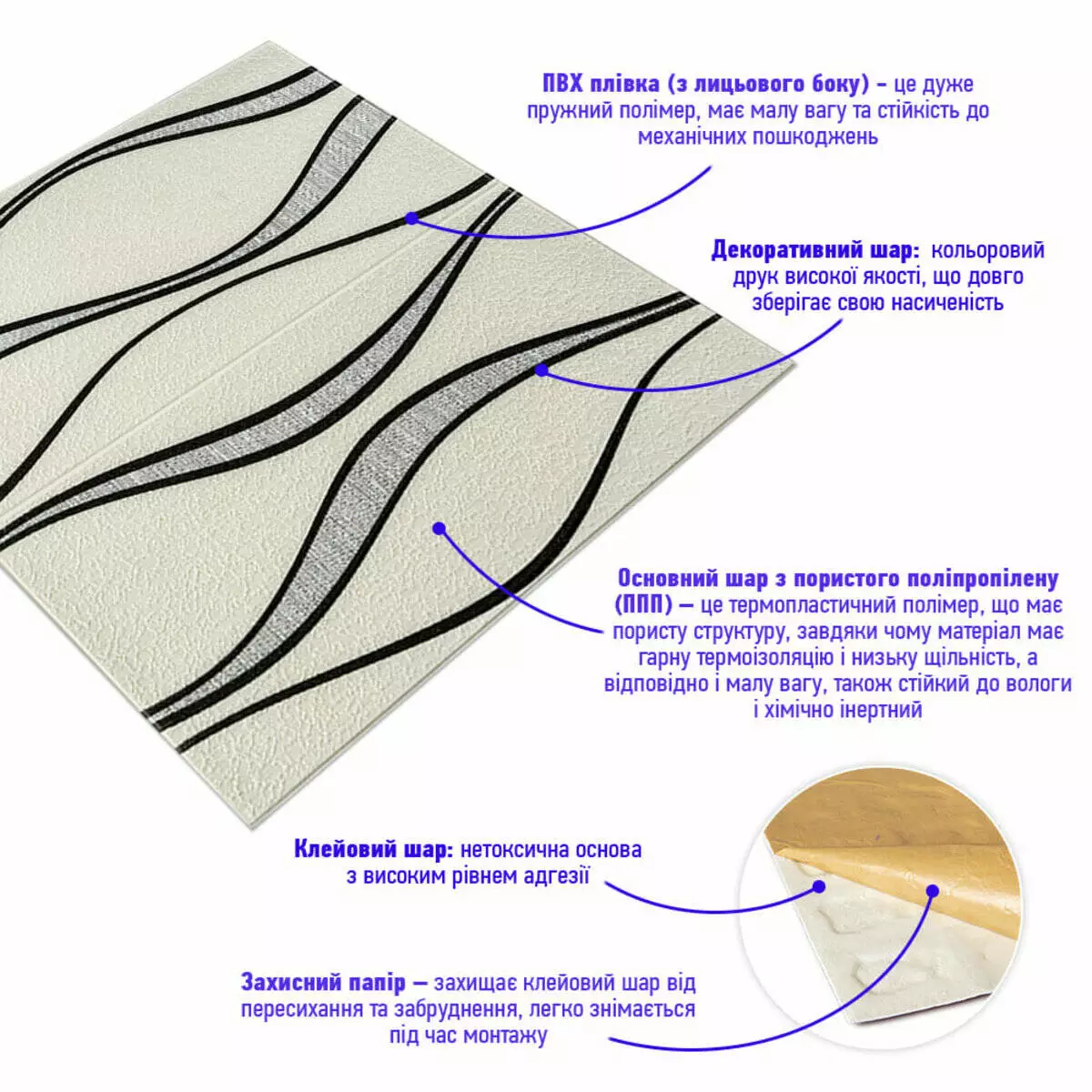 Самоклеюча 3D панель білі хвилі 700x700x5мм