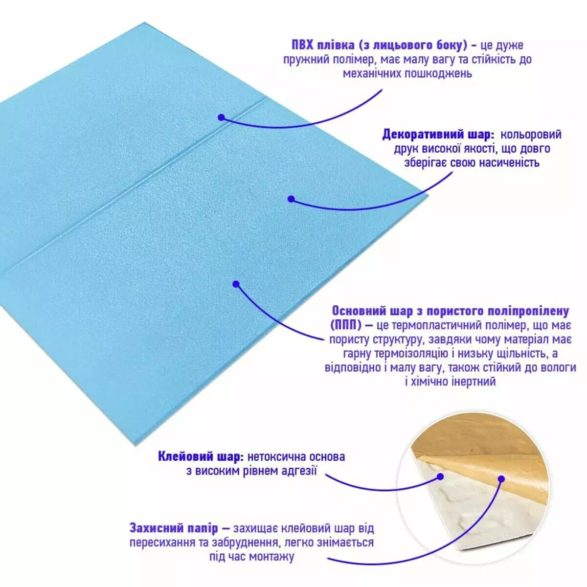 Самоклеюча 3D панель блакитні блоки 700х600х5мм