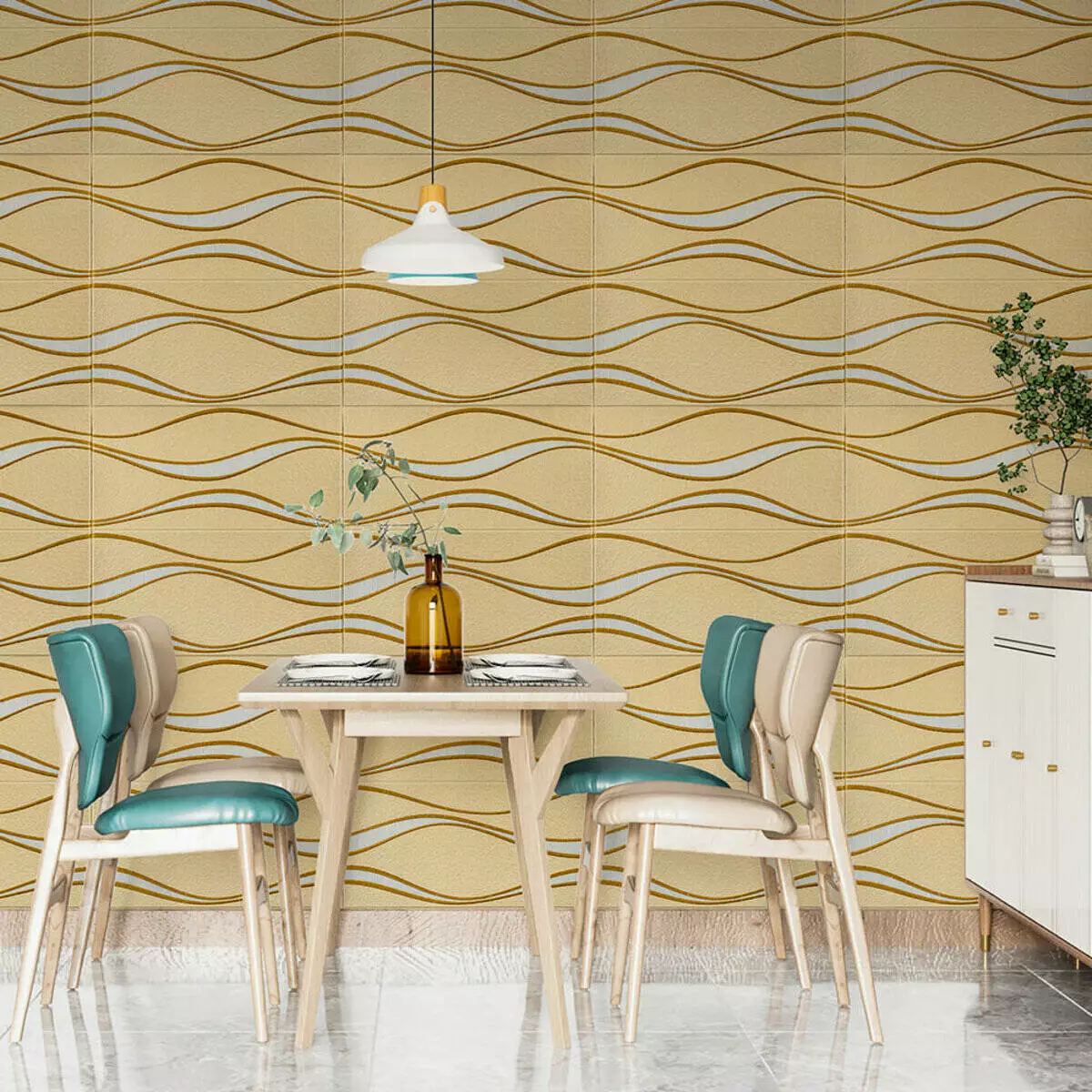Самоклеюча 3D панель золоті хвилі 700x700x5мм