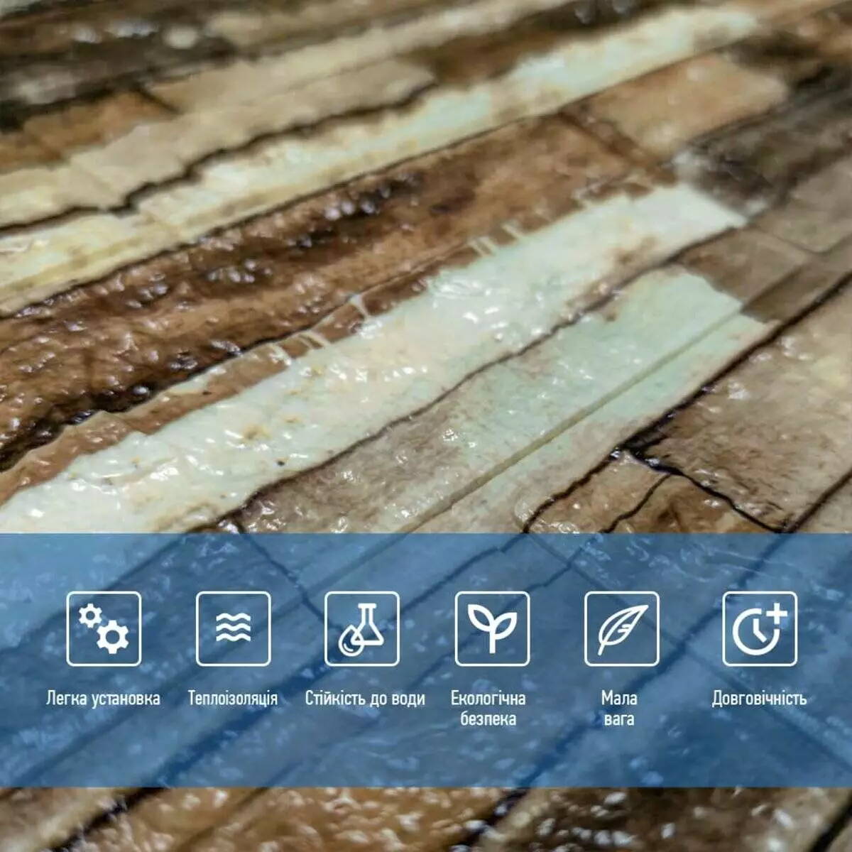 3. Легкість монтажу: наявність клейового шару дозволяє встановити панелі без необхідності застосування додаткових матеріалів.