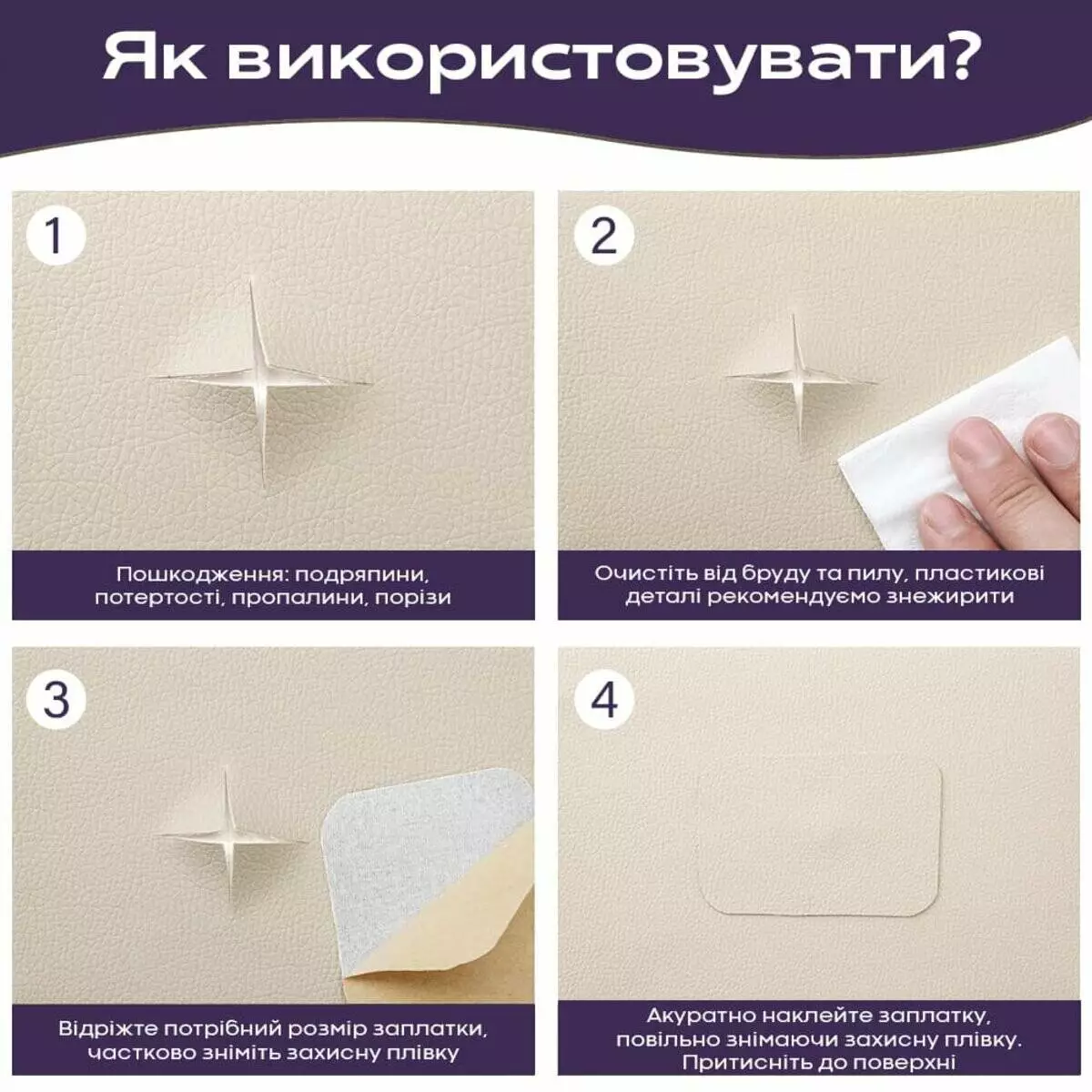 фігурних латок до усунення дефектів великих шкіряних