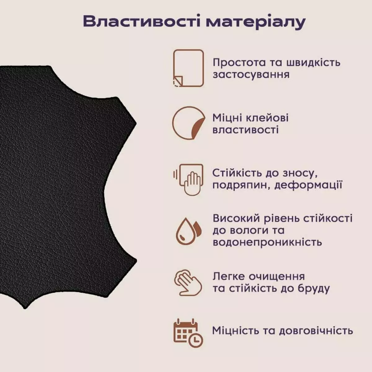 - Екологічна перевага: самоклейна екошкіра виготовляється без