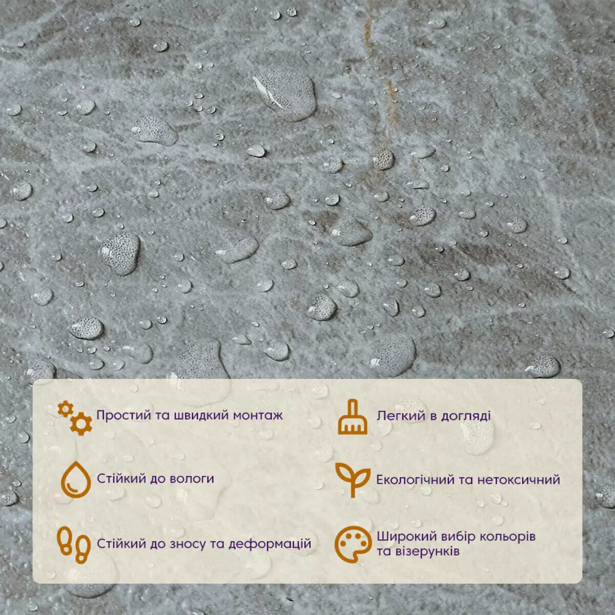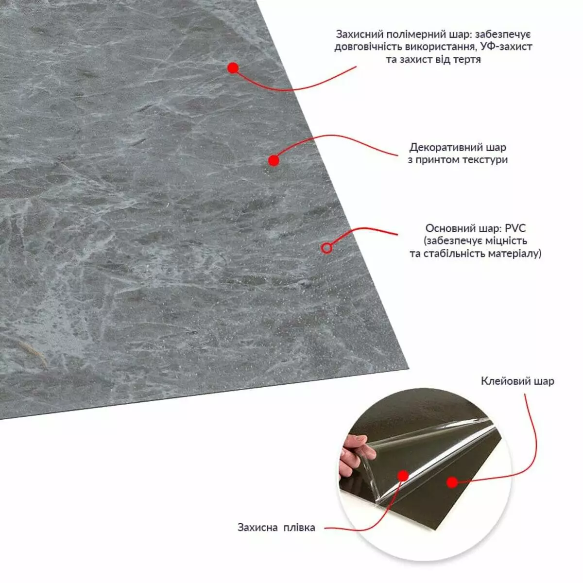 • Декоративний шар: плівка із кольоровим друком, який повністю передає фактуру природних матеріалів: деревини, каменю та інших
