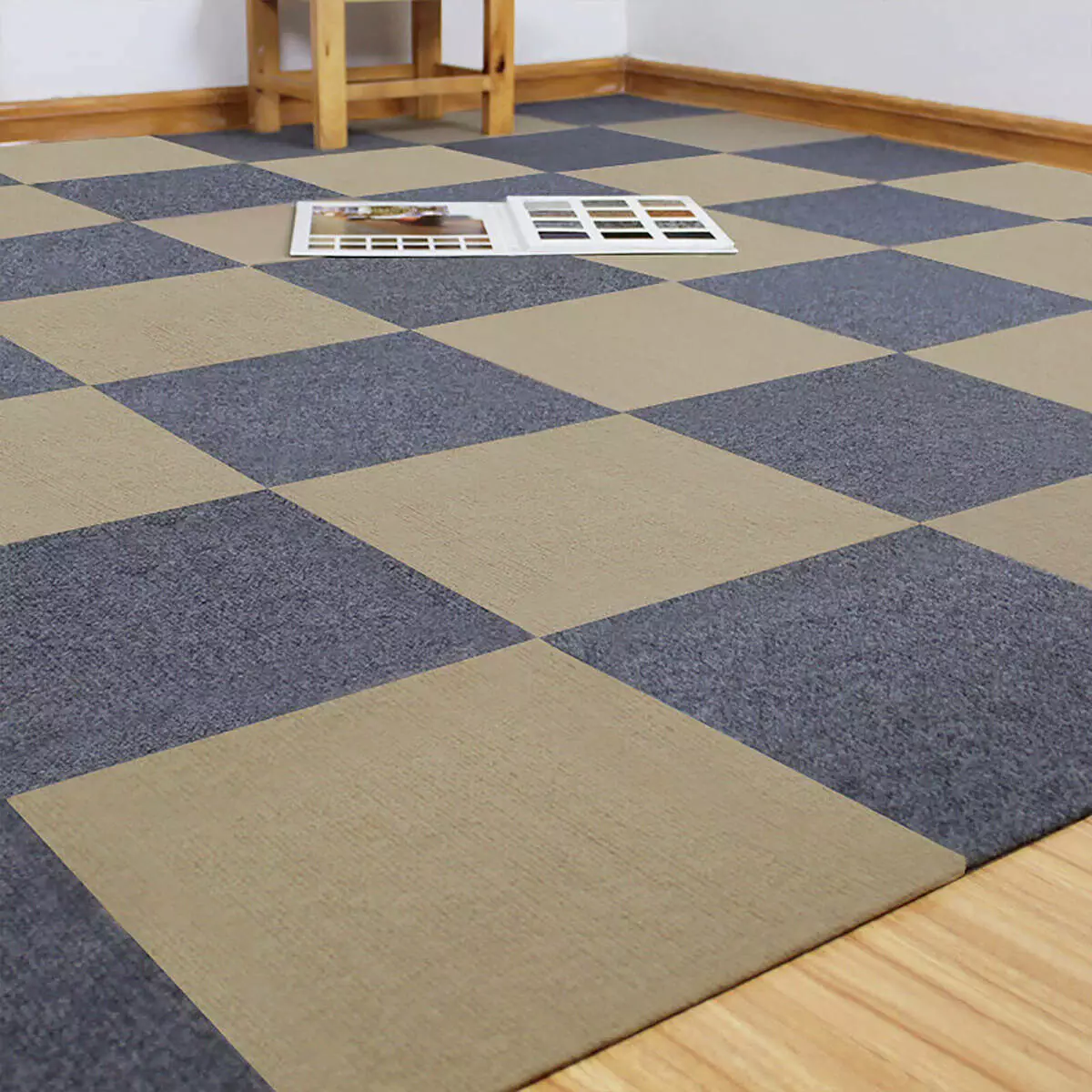 Ковролінову плитку можна монтувати на будь-яку поверхню – старий лінолеум, кахель, плитку, паркет, ламінат.
