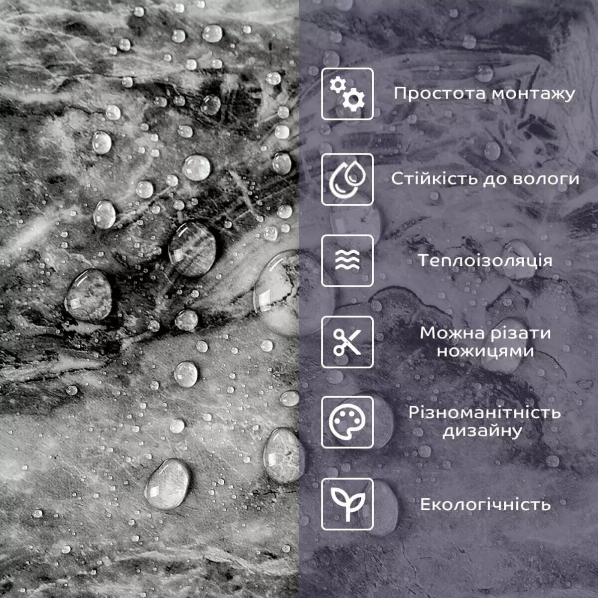 - 2. Стійкість до вологи: матеріал стійкий до впливу вологи та