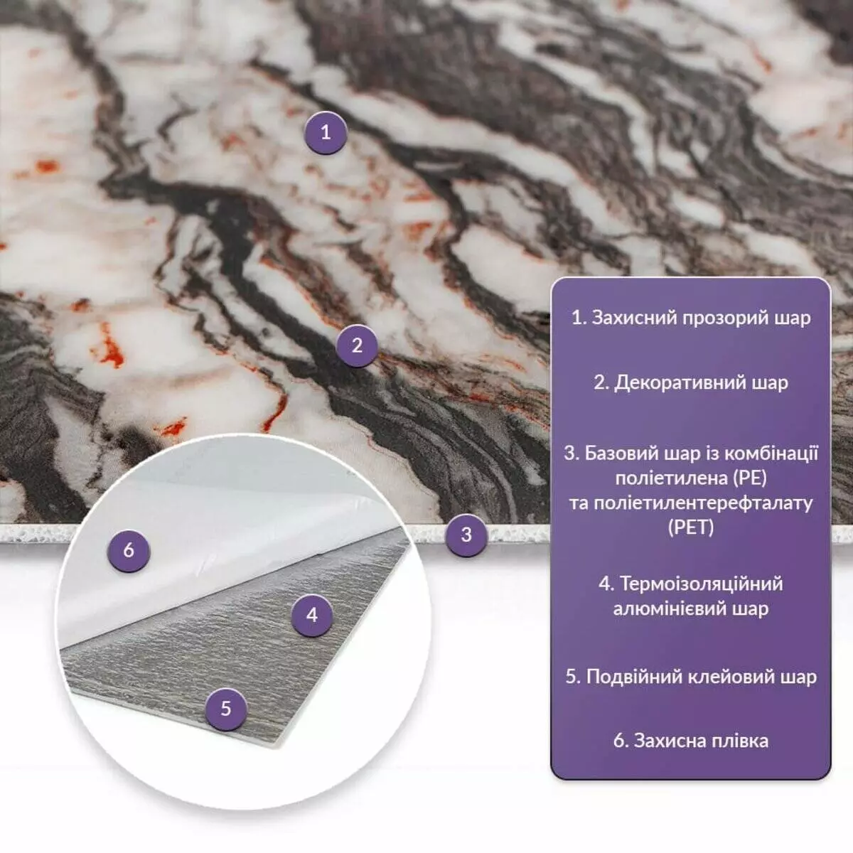 • Базовий шар з комбинації поліетилена (PE) і поліетилентерефталату (PET)