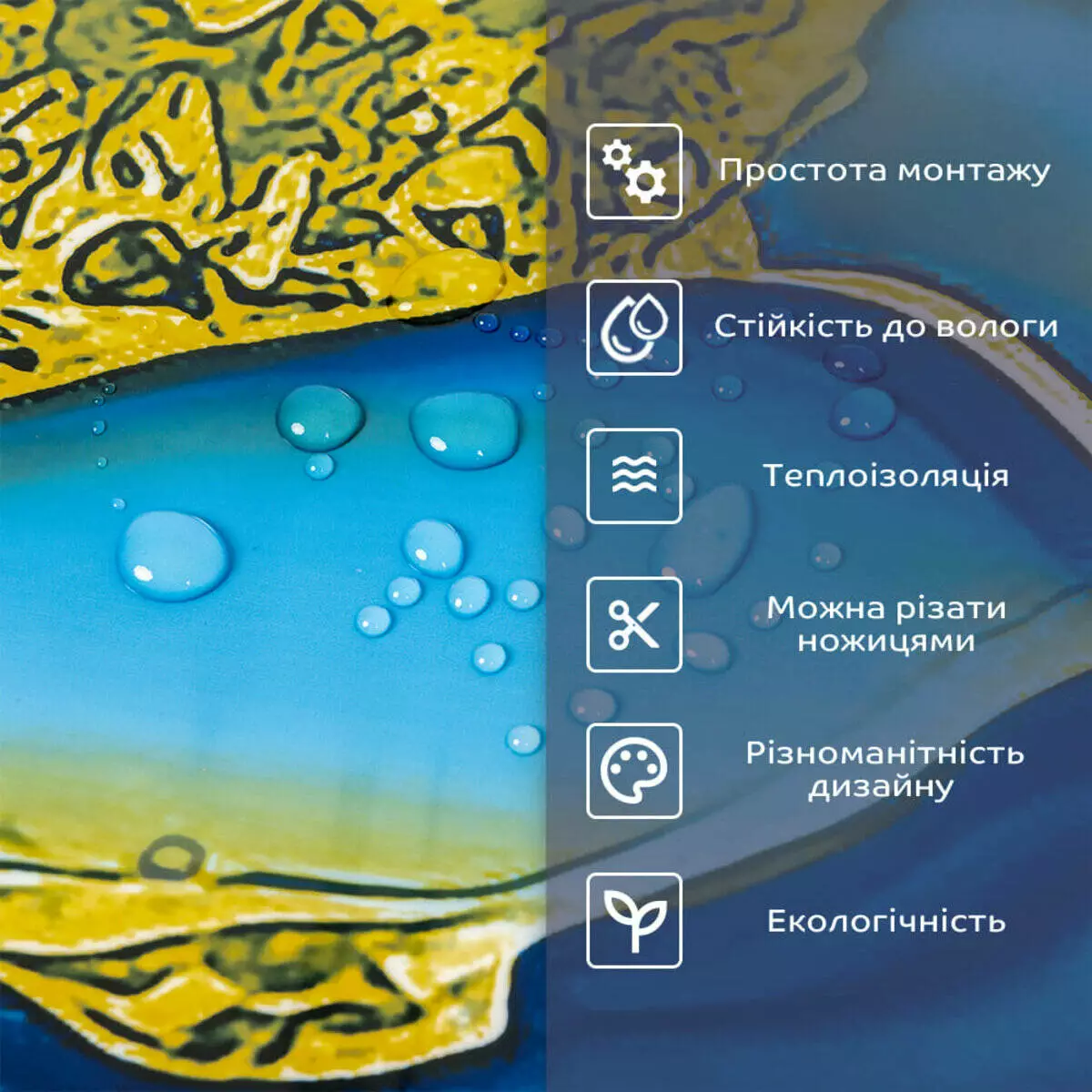 • 2. Стійкість до вологи: матеріал стійкий до впливу вологи та пари, а також до появи плісняви, що робить його придатним для використання у приміщеннях з високою вологістю, таких як ванни та кухні. Плитка підходить для створення фартуха кухні, можна клеїти біля плити на відстані не менше ніж 20-25 см;