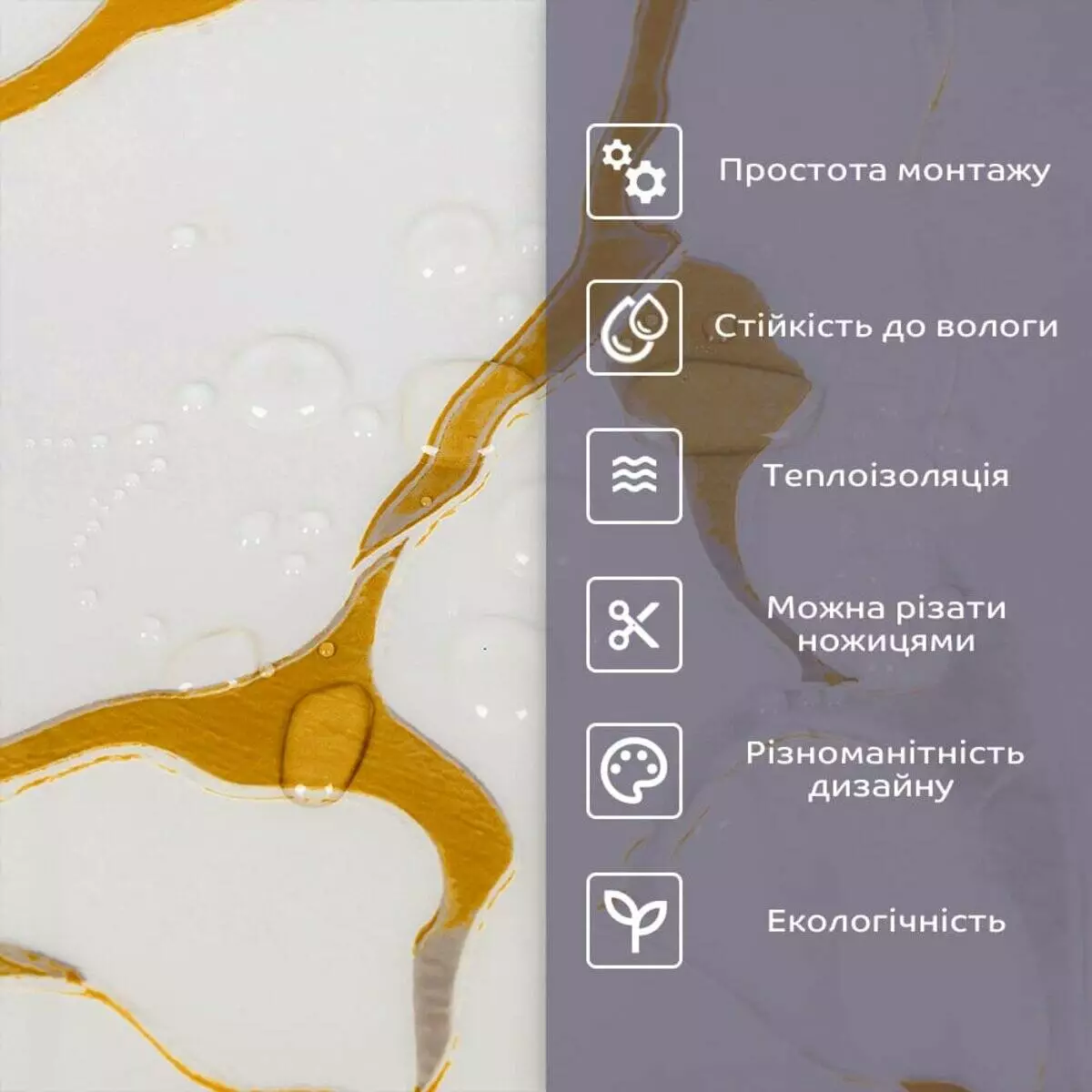 • 2. Стійкість до вологи: матеріал стійкий до впливу вологи та пари, а також до появи плісняви, що робить його придатним для використання у приміщеннях з високою вологістю, таких як ванни та кухні. Плитка підходить для створення фартуха кухні, можна клеїти біля плити на відстані не менше ніж 20-25 см;