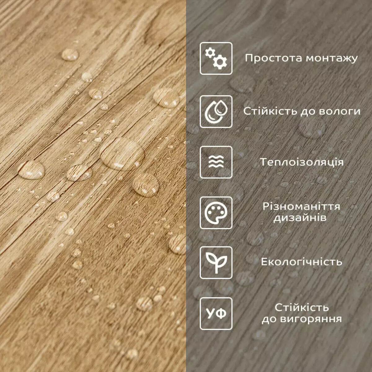 • Легкий догляд: вініл легко очищається і не вимагає спеціальних засобів для чищення.