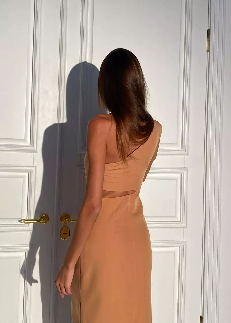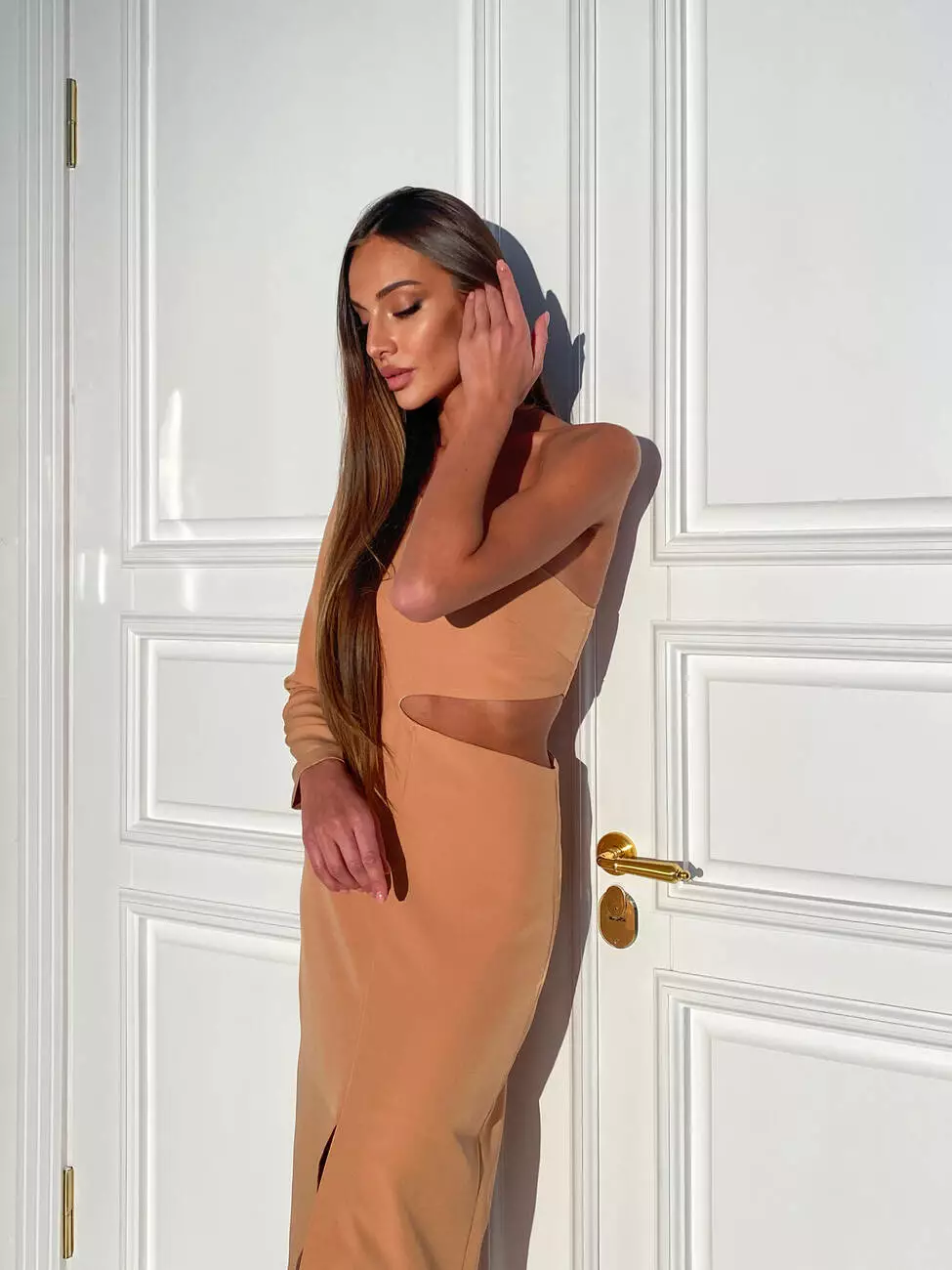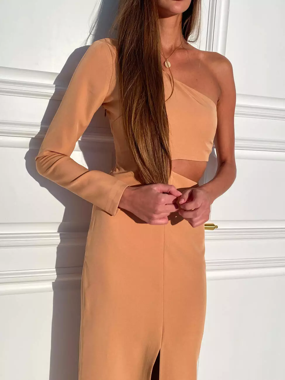 Сексуальна сукня ETOILE з елементами стриманості, асиметричне декольте та пікантний виріз по талії разом з глибоким розрізом по спідниці попереду робить неповторний образ будь-якої красуні.