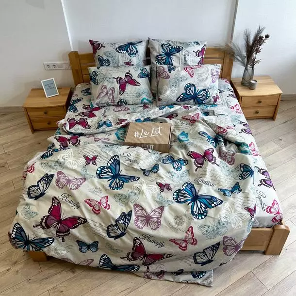 Семейное постельное белье LeLIT 0004 светло-серое с ярким принтом "Разноцветные бабочки"