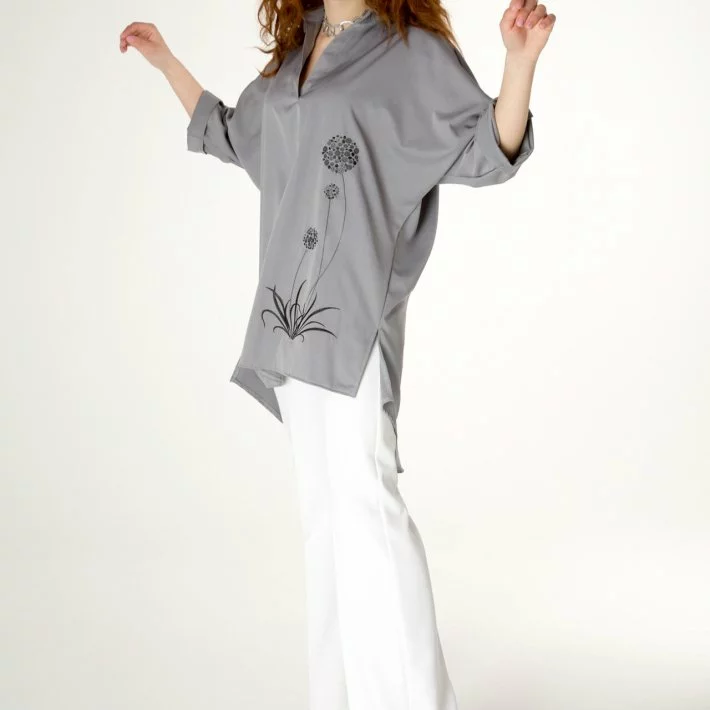 Туніка з матеріалу, який трохи щільніше сорочкової тканини, з