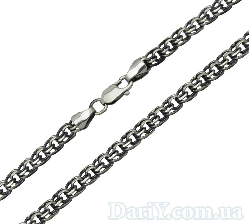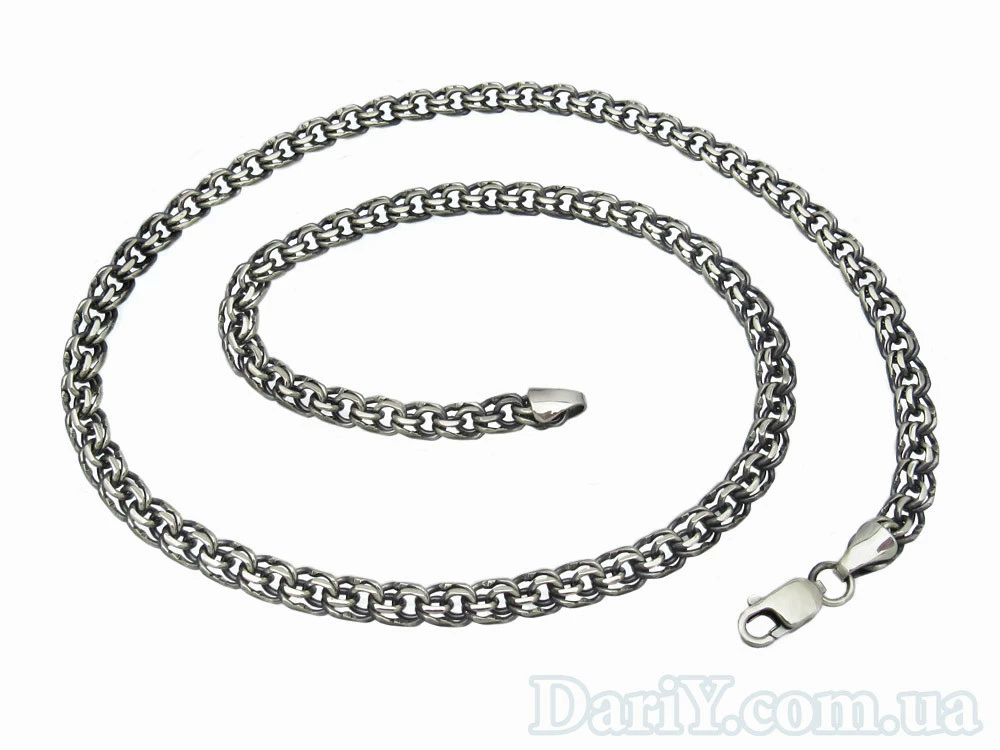 Серебряная черненая цепочка с плетением бисмарк, длиной 60см.